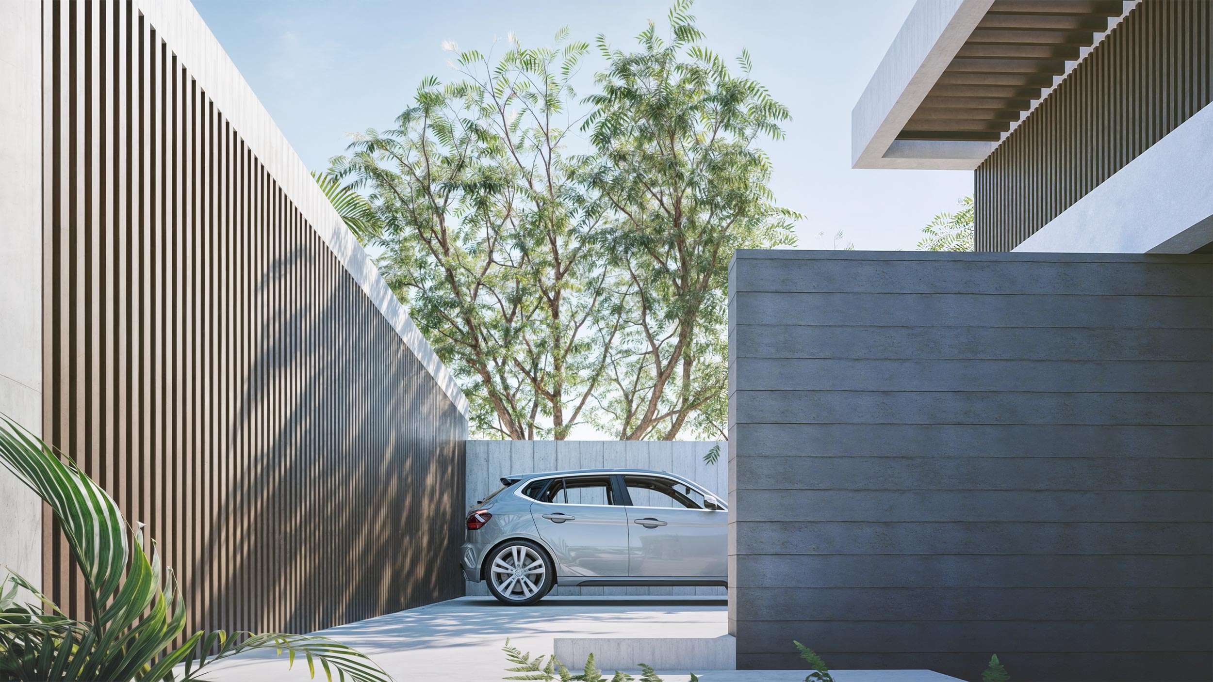 Propuesta de diseño para vivienda unifamiliar en La Molina. Buscamos aprovechar al máximo el terreno en pendiente y en esquina curva para lograr un diseño armonioso con su entorno.