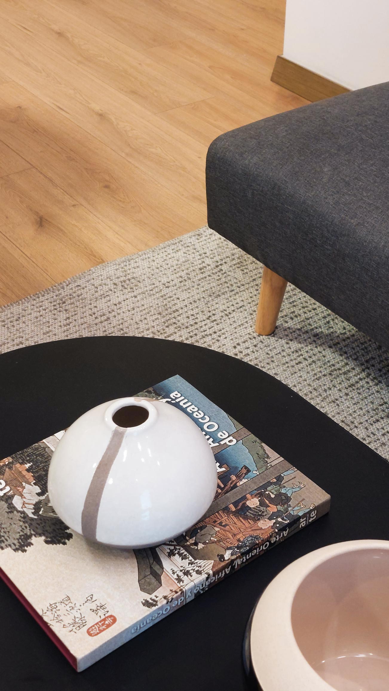 Propuesta de diseño para un dpto de 45m2 en San Isidro. La propuesta se inspiró en el hobbie principal del cliente que eran sus viajes por el mundo. El enfoque principal del espacio fue resaltar esta actividad pero desde una perspectiva más contemplativa. El punto focal de la sala es el cuadro central. Las pequeñas repisas además de exhibir la colección de vasos de shots de las distintas ciudades a las que viajó, esconden un mensaje oculto en código morse con la frase "Modo Avión".